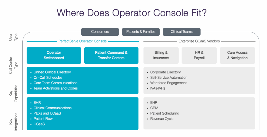 Today, PerfectServe is a cloud platform with a routing brain that optimizes schedules and streamlines care team collaboration. It’s used by 500+ hospitals and nearly 700,000 clinicians, and increasingly powers call and transfer centers through a modern operator console.