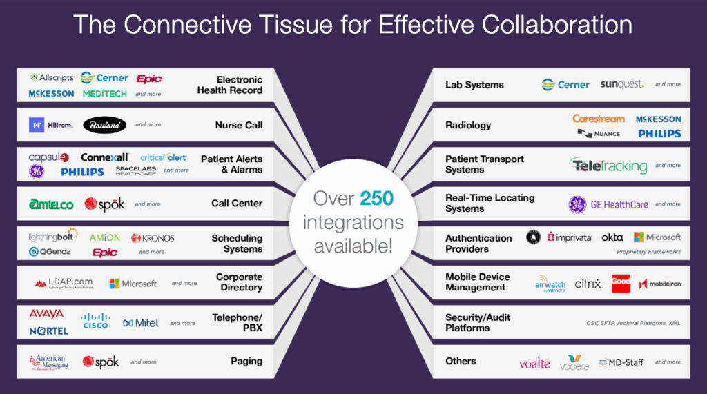 It integrates with Epic, Oracle Health, MEDITECH, nurse call vendors, paging networks, PBX systems, and more. These are the small seams that can keep a day in the life of a nurse or hospitalist from unraveling.