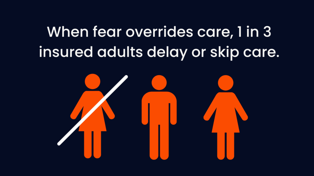- More than a third of insured adults postponed or skipped care because they feared the cost or didn’t trust their insurance would cover what their doctor ordered